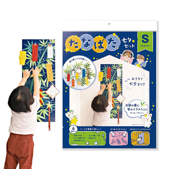 七夕飾りセットです! 台紙が笹のイラストになっていますので、そちらに七夕飾りを貼り付けてお楽しみ下さい☆